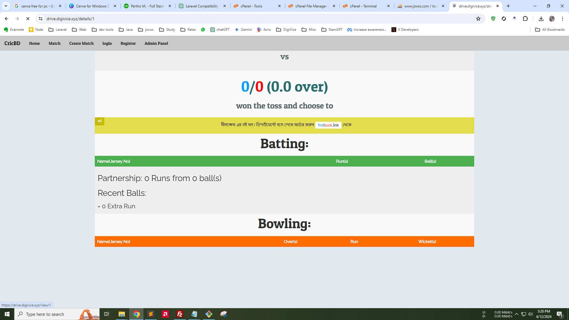 Live Cricket Score Updating System